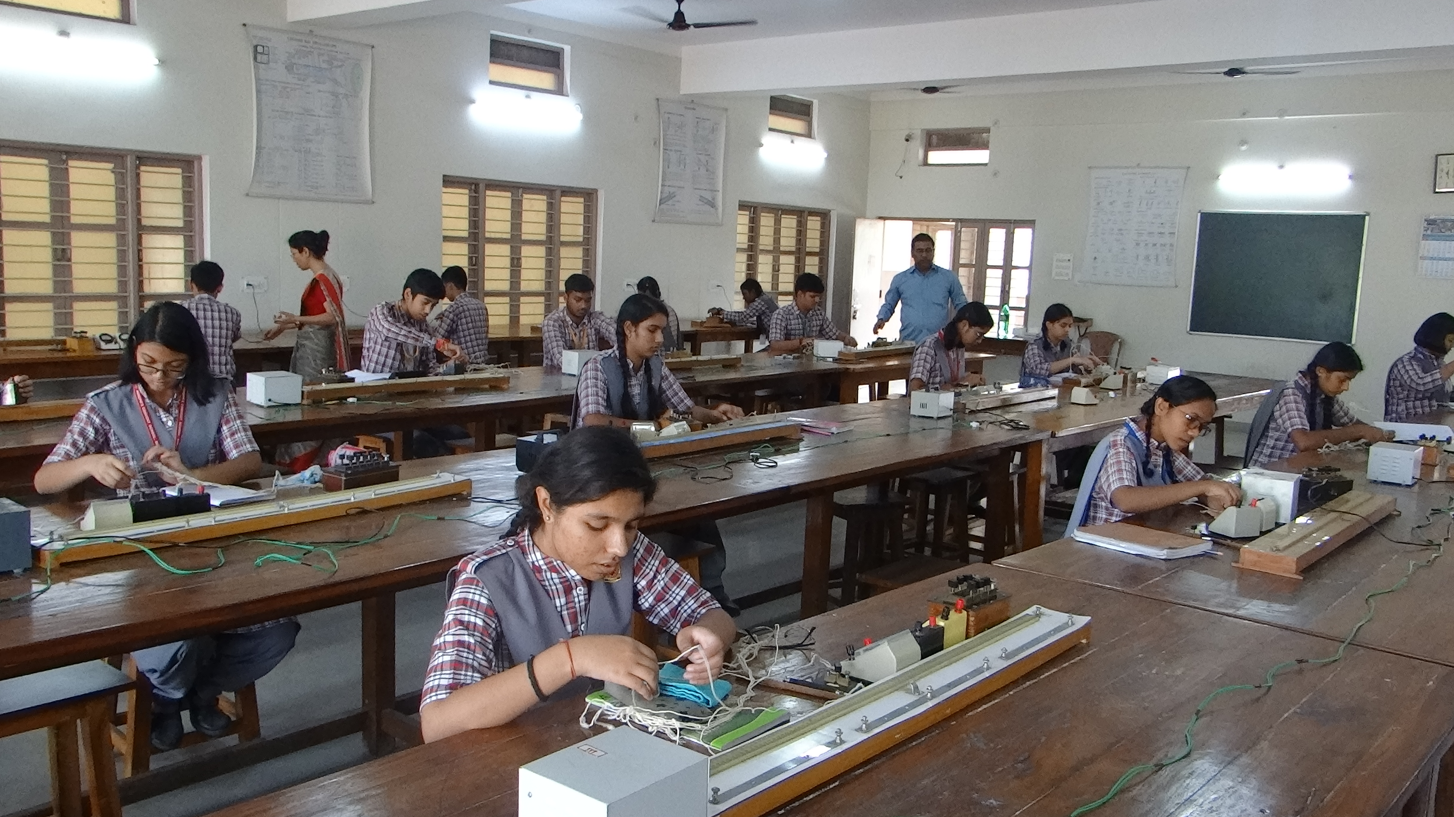 Our state-of-the-art Physics laboratory is equipped with modern equipments to help the students learn the concepts of Physics with experiments. It is designed to give practice of taking measurements, analyzing data and drawing inferences while the students experiment. The lab is quite spacious and very well ventilated to ensure proper availability of light in it. The lab is very well equipped with instruments, like- meter bridges, battery eliminators, potentiometers,etc. The pin-boards on each wall are decorated with very suitable charts, maps, illustrations and quotes and at the same time various models, made by the students, are exhibited all around the lab. One just cannot resist loving both the lab and the subject as the aura of Physics seems to besiege the invader.